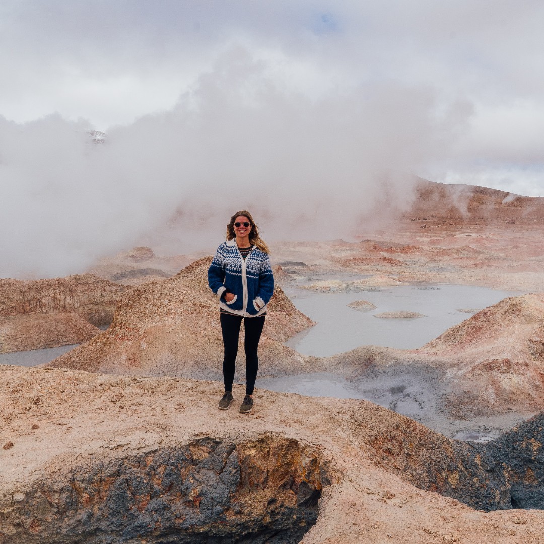 We enter the Eduardo Avaroa National Reserve, where you will see Laguna Blanca and Laguna Verde at the foot of the Licancabur Volcano. Along the way, we will visit the Dalí Desert, the Polques Hot Springs, the Sol de Mañana Geysers, and Laguna Colorada.
